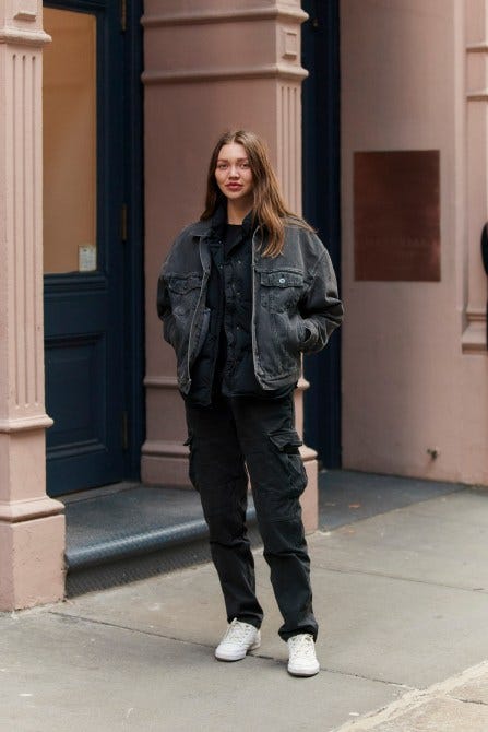 If denim on denim feels too Canadian Tuxedo for you, swap your jeans for cargo pants that give the same laid-back vibes but feel a bit more thoughtful.