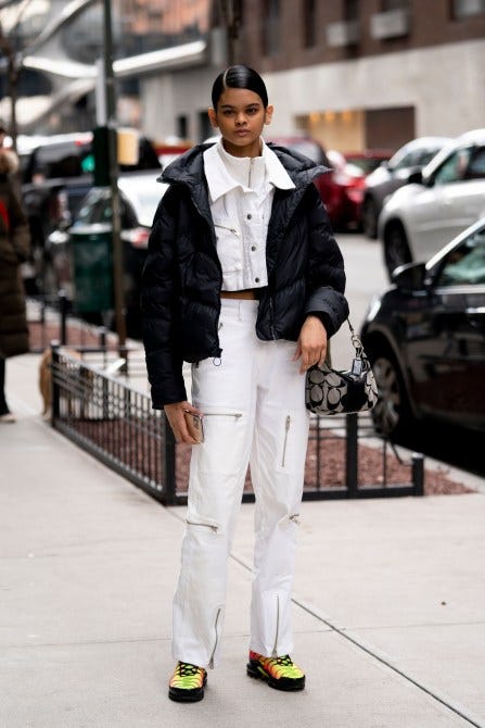Whoever said you can’t wear white after Labor Day obviously didn’t know the magic of black-and-white styling for fall. Exhibit A.