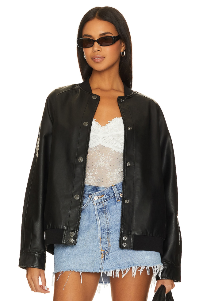 Free People Wild Rose Faux Leather Bomber Jacket